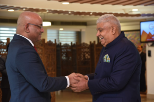 नई दिल्ली, 24फरवरी। भारत माननीय उपराष्ट्रपति जगदीप धनखड़ ने आज गुयाना के उपराष्ट्रपति भरत जगदेव के साथ मुलाकात की। इस दौरान दोनों नेताओं ने भारत और गुयाना के बीच प्रगाढ़ संबंधो को लेकर संतोष व्यक्त किया तथा द्विपक्षीय संबंधों को और अधिक मजबूत करने के लिए अपनी प्रतिबद्धता जाहिर की।