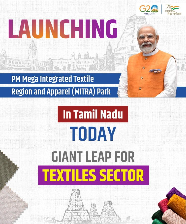 Today is a very special day for my sisters and brothers of Tamil Nadu! The aspirational district of Virudhunagar will be home to a PM MITRA mega textiles park. This will boost the local economy and will prove to be beneficial for the youngsters of the state. #PragatiKaPMMitra https://t.co/h8n44xs6Pi