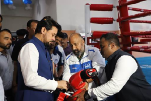 नई दिल्ली, 14अप्रैल।युवा कार्यक्रम और खेल, सूचना एवं प्रसारण मंत्री अनुराग सिंह ठाकुर ने आज हिमाचल प्रदेश के हमीरपुर में भारतीय खेल प्राधिकरण राष्ट्रीय उत्कृष्टता केंद्र (एनसीओई) में खेल सुविधाओं का उद्घाटन किया। भारतीय खेल प्राधिकरण एनसीओई हमीरपुर में बॉक्सिंग हॉल और जूडो हॉल में फर्श के साथ बैडमिंटन कोर्ट मैट स्थापित और संचालित हैं।