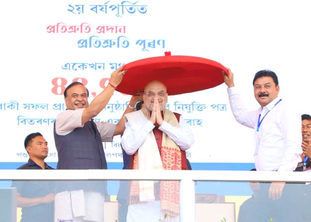केन्द्रीय गृह एवं सहकारिता मंत्री ने कहा कि  नरेन्द्र मोदी जी के नेतृत्व में विकास के कई काम असम में हुए हैं। उन्होंने कहा कि मोदी सरकार ने असम की भाषा, संस्कृति, उसका संरक्षण और संवर्धन करने के प्रयास किए हैं। लचित बड़फुकन जी के 400वें जयंती समारोह में प्रधानमंत्री मोदी जी ने खुद शामिल होकर लचित बड़फुकन को श्रद्धांजलि दी। उन्होंने कहा कि हाल ही में असम के युवाओं ने प्रधानमंत्री मोदी की उपस्थिति में विश्वप्रसिद्ध बिहू नृत्य का विश्व रिकॉर्ड बनाया।  शाह ने कहा कि केंद्र की नरेन्द्र मोदी सरकार और असम की हिमंता बिस्वा सरकार ने पूरे असम को पूर्वोत्तर भारत और पूर्वी देशों की मेडिकल कैपिटल बनाने के लिए कई कदम उठाए हैं। उन्होंने कहा कि असम की राजकोषीय स्थिति में सुधार आया है, राज्य का जीएसडीपी 2021-22 में 4 लाख करोड़ रूपए से बढ़कर 2023-24 में 5.50 लाख करोड़ रूपए हो गया है। राज्य में उद्योग बढ़ रहे हैं, औद्योगिक नीति के तहत निवेश आ रहा है और अरूणोदय स्कीम से असम विकास की राह पर चल पड़ा है। उन्होंने कहा कि असम में कृषि और डेयरी क्षेत्र का विकास हो रहा है, 3000 तालाबों को विकसित किया जा रहा है और मोदी सरकार असम को अगले 5 साल में बाढ़मुक्त बनाने के लिए हरसंभव प्रयास कर रही है।