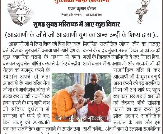 आडवानी जी के जीते जी, आडवानी युग का अंत उन्हीं के शिष्य के द्वारा