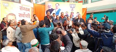 नई दिल्ली, 6जनवरी। तीन राज्यों में भाजपा की भारी जीत के बाद पहली बार चंडीगढ़ भाजपा कार्यालय में पहुंचे भारतीय जनता पार्टी के राष्ट्रीय अध्यक्ष जगत प्रकाश नड्डा का चंडीगढ़ के कार्यकर्ताओं ने प्रदेश अध्यक्ष जतिंदर पाल मल्होत्रा के नेतृत्व में भव्य स्वागत तथा अभिनंदन किया। बीजेपी कार्यालय में चंडीगढ़ के कार्यकर्ताओं ने ढोल नगाड़े बजाकर उनका अभिनंदन किया तथा तीन राज्यों की में जीत की बधाई दी।