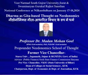 प्रो. गोयल ने कहा कि वर्तमान युग में सभी चुनौतियाँ और सांसारिक समस्याएँ गीता-आधारित नीडोनॉमिक्स को नीडो-वेल्थ, नीडो-हेल्थ और नीडो-खुशी के लिए आध्यात्मिक रूप से निर्देशित भौतिकवाद (एसजीएम) रणनीति के रूप में समझने की मांग करती हैं।