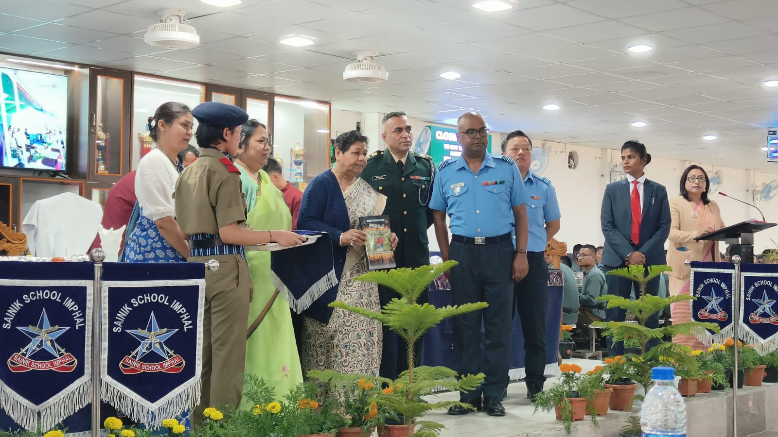 ग्रुप कैप्टन रजनीश कुमार, प्रिंसिपल सैनिक स्कूल इंफाल, लेफ्टिनेंट कर्नल सतीश कुमार, उप प्रिंसिपल सैनिक स्कूल इंफाल, स्क्वाड्रन लीडर एल.आर. जोटे, प्रशासनिक अधिकारी, सैनिक स्कूल इंफाल, किमी. एन. कुलकर्णी देवी, निदेशक, योजना, मणिपुर सरकार, शिक्षक और स्कूल के छात्र भी उपस्थित थे।