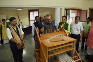 नई दिल्ली, 13अगस्त। केन्द्रीय वस्त्र मंत्री गिरिराज सिंह ने 10 अगस्त, 2024 को राष्ट्रीय फैशन प्रौद्योगिकी संस्थान (निफ्ट), गांधीनगर का दौरा किया, जहां उन्होंने हथकरघा पखवाड़ा समारोह में सक्रिय रूप से भाग लिया। इस अवसर पर श्री सिंह ने भारतीय वस्त्रों की अद्वितीय विरासत को प्रदर्शित करने वाली एक जीवंत और सावधानीपूर्वक क्यूरेट की गई हथकरघा प्रदर्शनी का उद्घाटन किया।