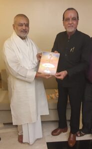 ब्रह्मचारी गिरीश जी ने अपनी पुस्तक “परम पूज्य महर्षि महेश योगी जी की दैवीय छत्रछाया में ब्रह्मचारी गिरीश” महानगर आयुर्वेद सेवा संघ, मुंबई के अध्यक्ष, मुंबई के प्रसिद्द नाड़ी वैद्य माननीय श्री विनायक तायड़े जी को भेंट की।